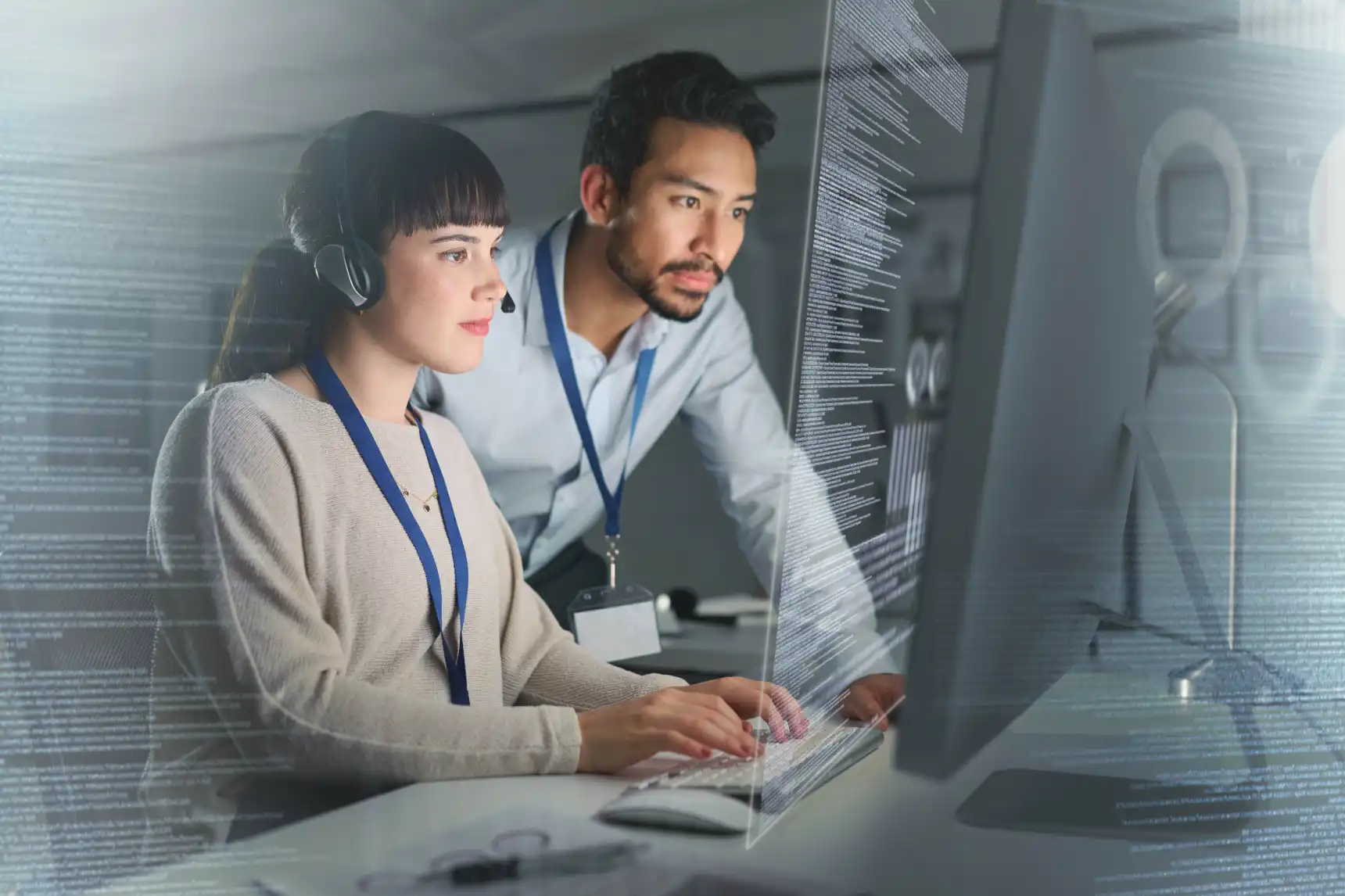 Customer support or IT staff working with code on a large transparent screen.By Sophia Chen / January 22, 2025